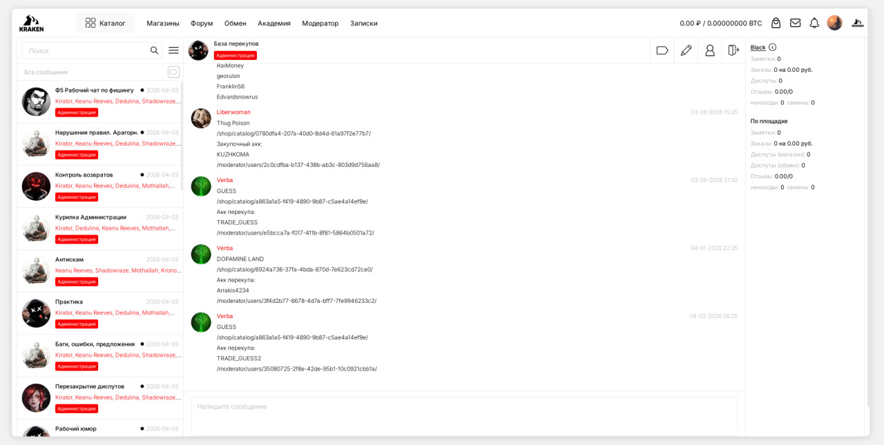 Именно Профессор - автор и концептуальный вдохновитель той системы, при которой у шопов из его «банды» есть модераторские доступы на Кракене. Вы не представляете масштаб воровства, осуществлённого через эту «схему». Буквально сами себе заходят и закрывают диспуты на десятки миллионов рублей, снимают через админку клады нелояльных шопов или шопов, которые высказывают недовольство площадкой.