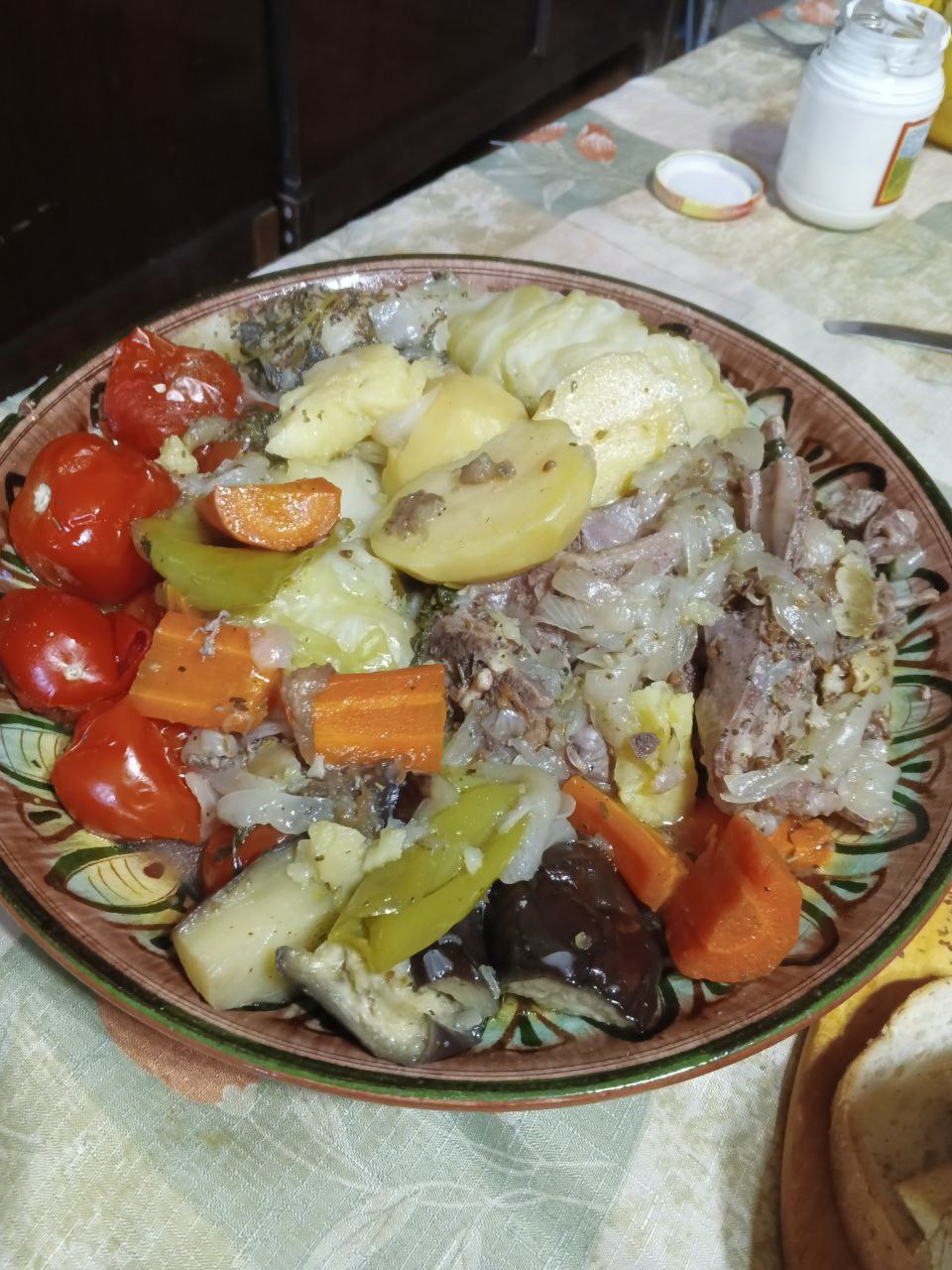 Мясо отраливается от костей , картошка и капустаи все овощи пропитались ароматами . Всё в собственном соку!