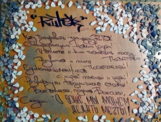 Далее написал поздравление, где камни послужили вроде рамки или окантовки!)