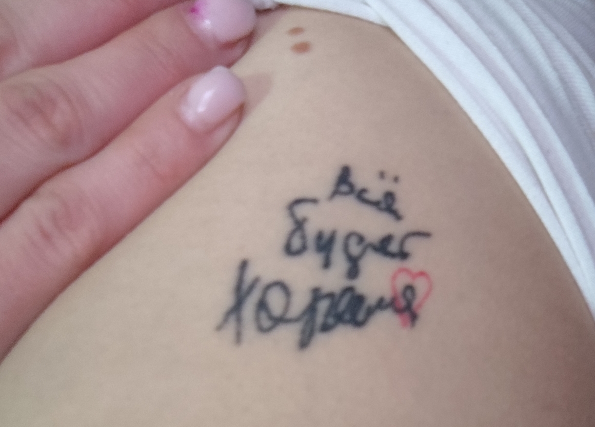 У меня под сердцем набита его фраза. "Все будет хорошо". Криво,но так значимо для меня.