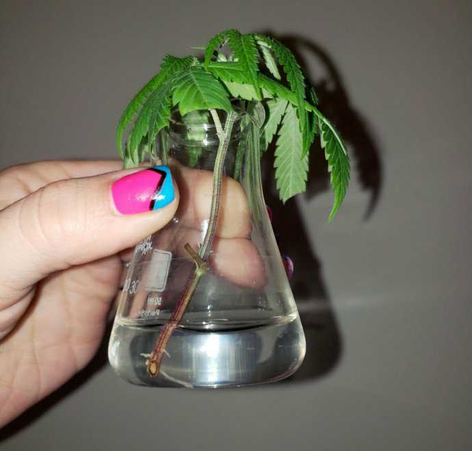 Из больших веток тоже можно попробовать вырастить клон. Есть гроверы, которым удавалось клонировать стебли длиной 30 см и даже больше. Однако в случае с большими ветками стоит использовать аэроклонер, чтобы место формирования корня сразу находилось в питательной среде. Это позволит ускорить развитие растения и появление корней.