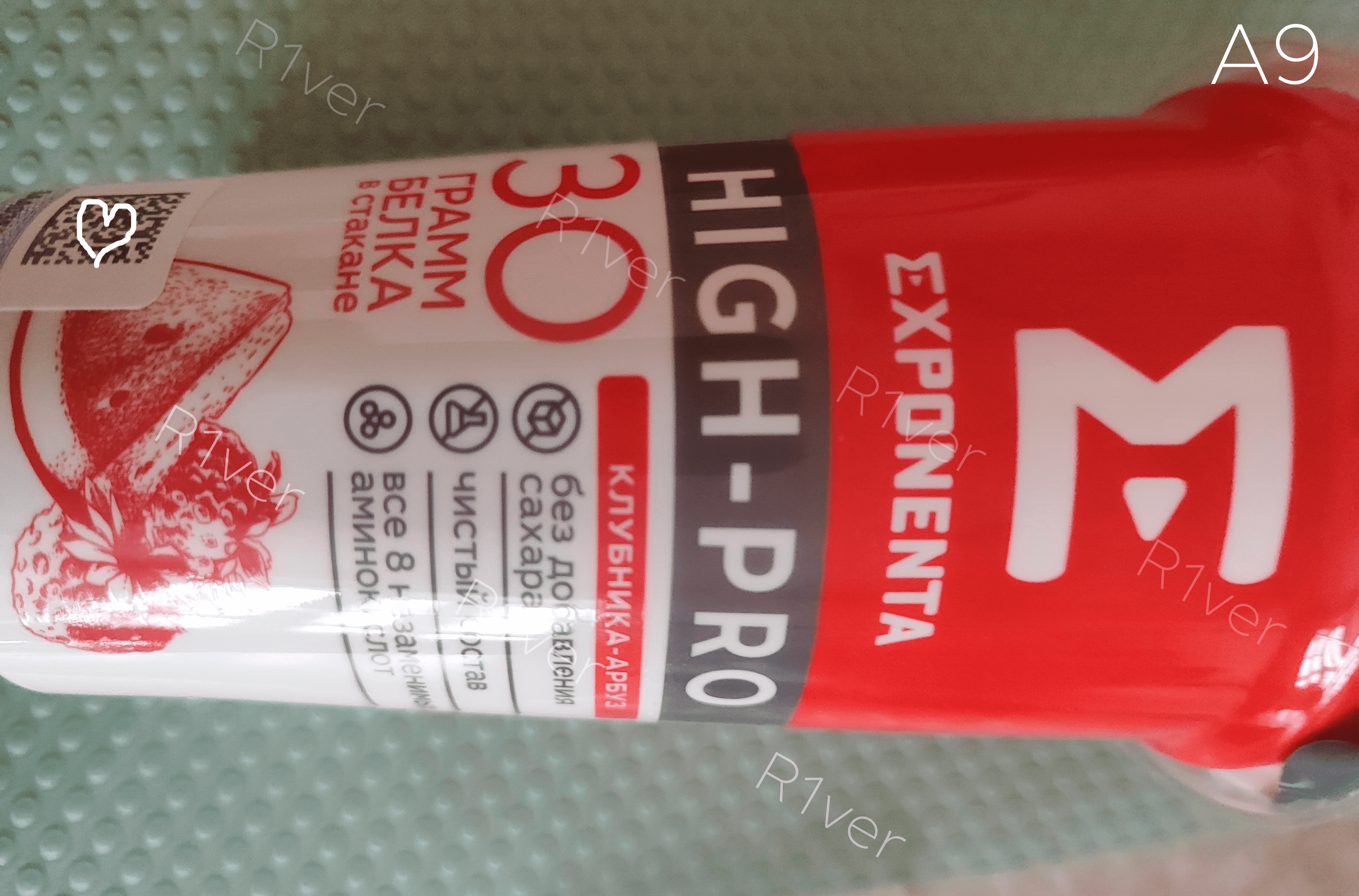 5) Туда же отправляем 250 г молочной жидкости (в моем случае - обезжиренный йогурт со вкусом клубники, см. фото а9) и 1 яйцо (предварительно разбив, см. фото а10, зачем???), см. фото а11, а12. Взбиваем все очень тщательно миксером или подручными средствами.