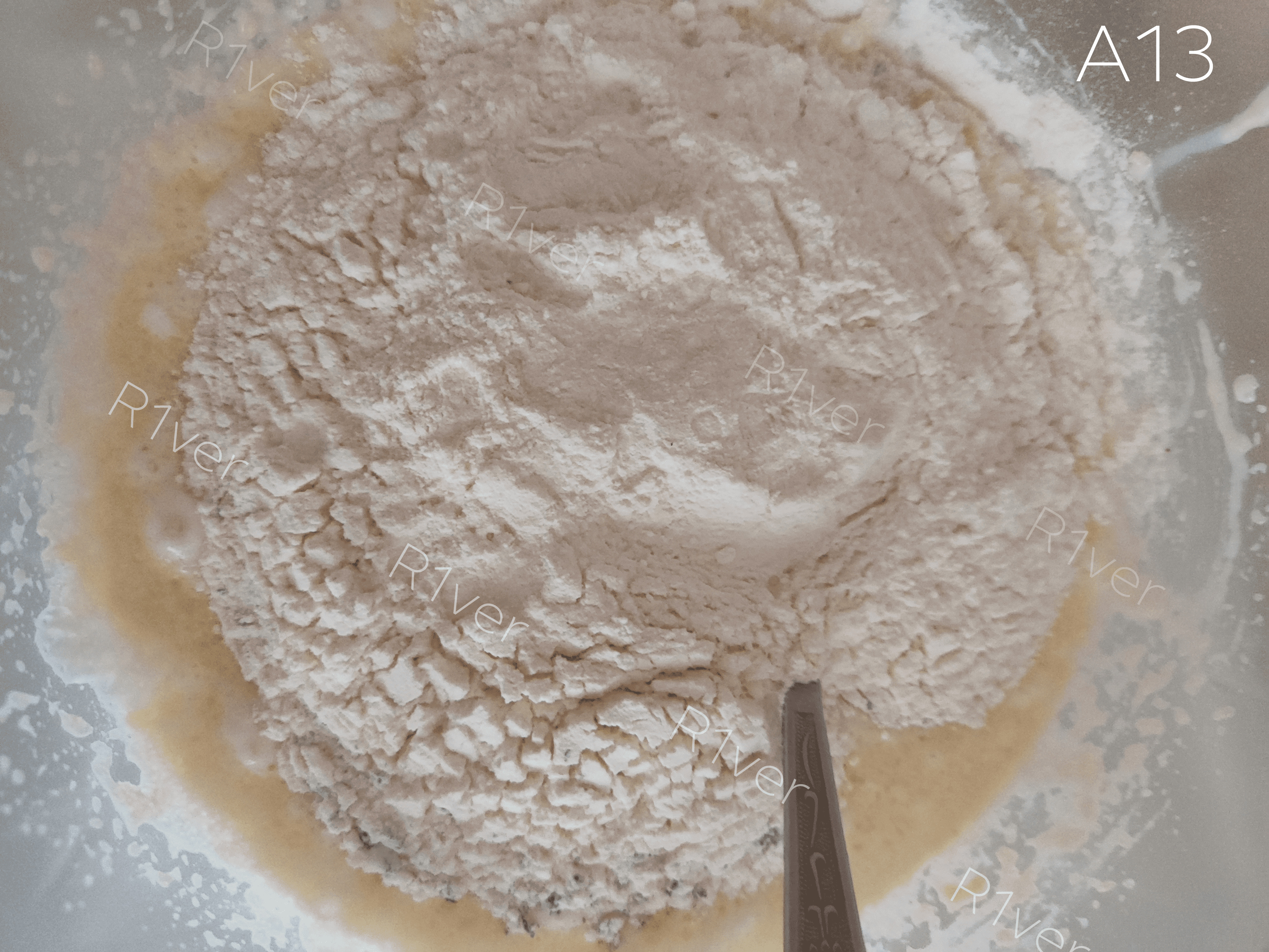 2) Далее в эту же смесь добавляем сахар\соль\разрыхлитель (пищевую соду, см. фото а6) по соотношениям, указанным в ингредиентах (обязательно пол чайной ложки разрыхлителя\соды). И все тщательно перемешиваем. Далее отставляем миску с этой смесью отдыхать и примемся за другие процедуры.