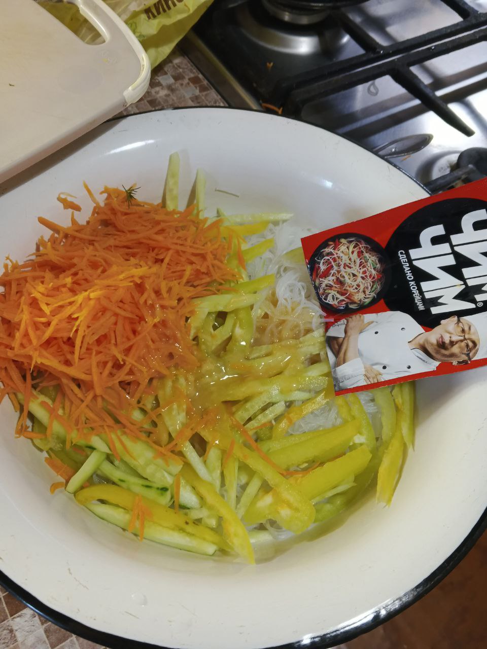 Тут всё просто, приправа для салата - готова, той же марки, что и сома лапша.