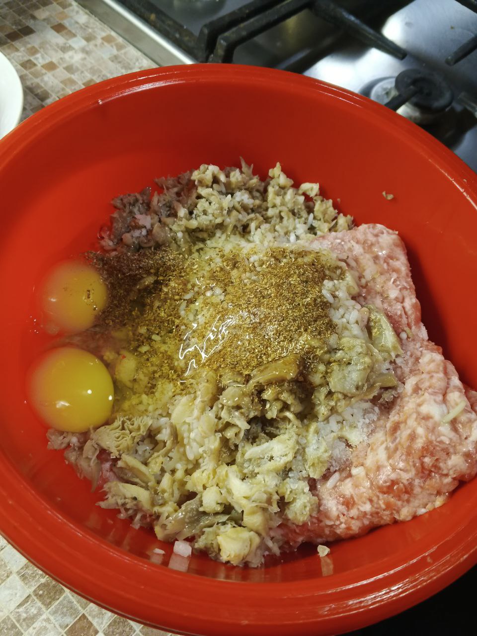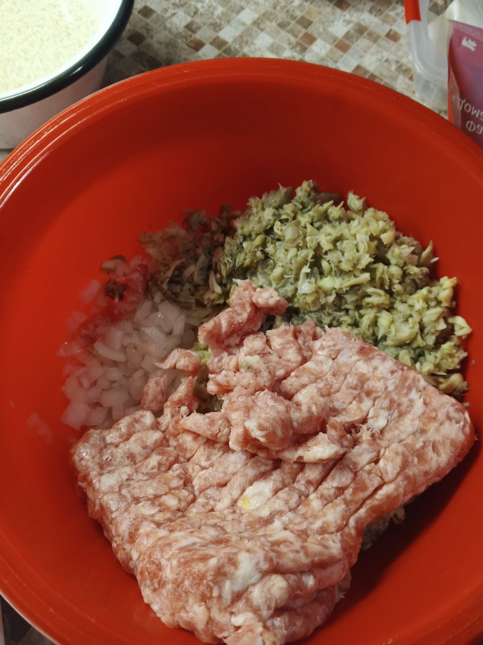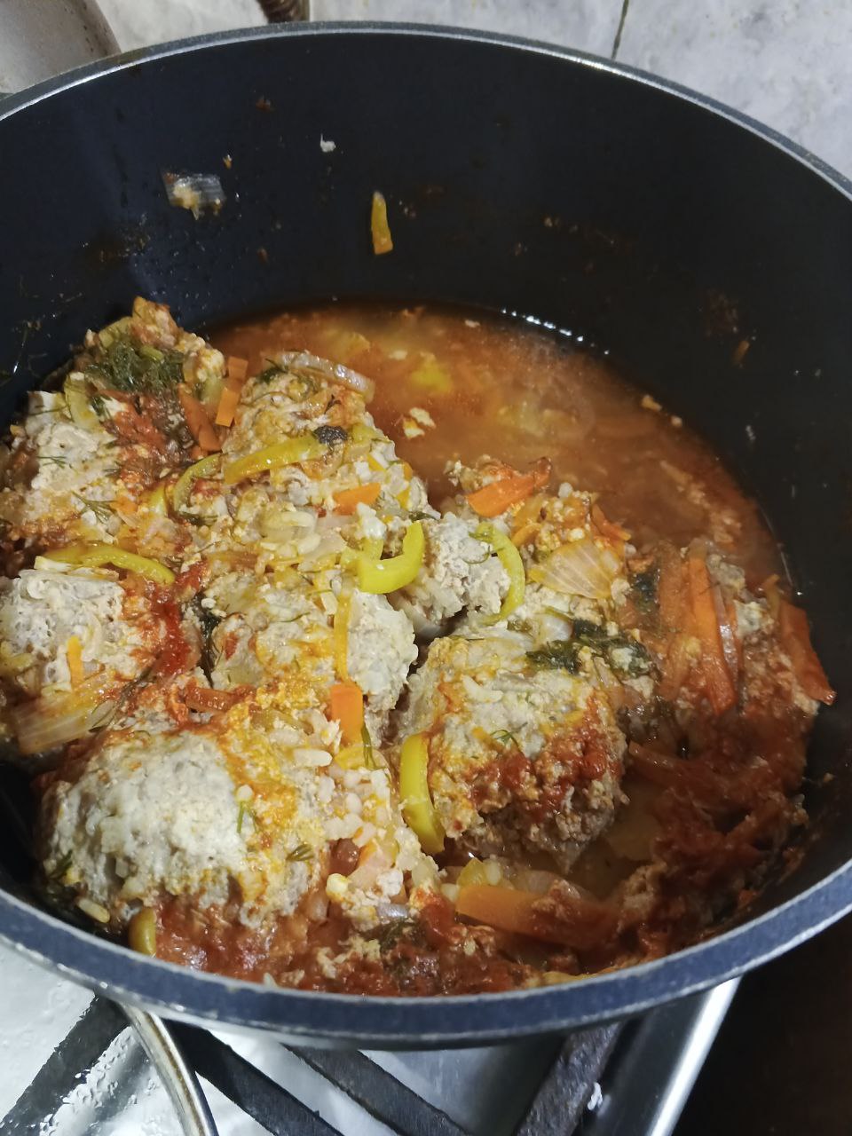 ТЕФТЕЛИ С ДВУМЯ ВИДАМИ МЯСА, ДИЕТИЧЕСКИЕ. Продукты: Филе бедра индейки Мякоть лопатки (говядина) Заранее замоченный рис Помидоры Репчатый лук Морковь Картофель Зелень петрушки Яйца Специи: Кинза молотая (кориандр) Зира Смесь перцев Приготовление: Сначала перемалываем мясо Затем...