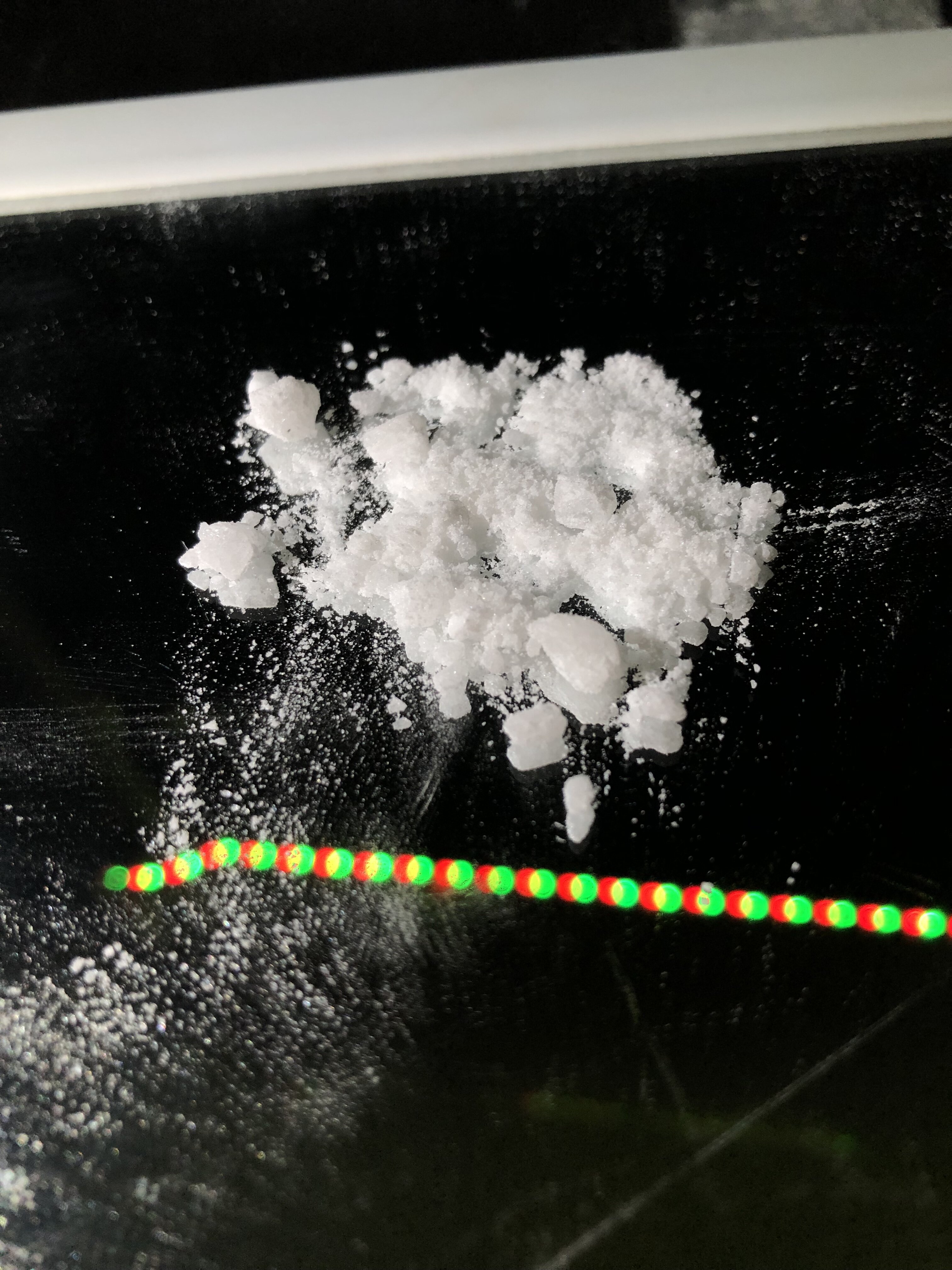 Раскрошил и начертил тонкую длинную дорожку рошатся легко с характерным хрустом кристаллов).