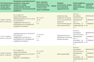 Появится таблица с долгами, ищем там столбец "Дата, причина окончания или прекращения ИП (статья, часть, пункт основания)".